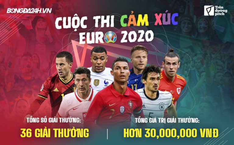 Thể loại dự thi: bài viết, video, thơ, hịch, rap; Tác phẩm thể hiện cảm xúc về các trận đấu, ấn tượng bàn thắng đẹp, câu chuyện trên sân cỏ. Bài dự thi từ 600 đến 3000 từ. Tác phẩm dự thi vi tính trên khổ A4; phía cuối ghi rõ bút danh và họ tên thật, tuổi, nơi thường trú, điện thoại, số căn cước. Bài dự thi gửi về: gocbandoc@bongda24h.vn với tiêu đề ghi rõ: Bài dự thi sống cùng Euro 2020+ Tên tác giả. Thời gian nhận bài đến hết ngày 14/7/2021. Tác phẩm hợp lệ là bài viết được đăng tải trên website bongda24h.vn. Cơ cấu giải thưởng: 01 giải nhất: 6.000.000 Đ; 02 giải nhì: mỗi giải 3.000.000 Đ; 03 giải ba: mỗi giải 1.000.000 Đ; 15 giải khuyến khích: mỗi giải 500.000 Đ; 05 giải thưởng nhiều view dựa trên thống kê trong Google Analytics của Bongda24h: mỗi giải 1.500.000 Đ; 10 giải may mắn do Bongda24h.vn bình chọn: nhận 1 trong 2 quyển sách “CR7- Hành trình lên đỉnh thế giới” hoặc “Cristiano & Leo: Khổ luyện và thiên tài”. Lễ phát thưởng được tổ chức cuối tháng 7 đến nửa đầu tháng 8/2021. BTC sẽ thông báo kết quả tại trang web: https://bongda24h.vn