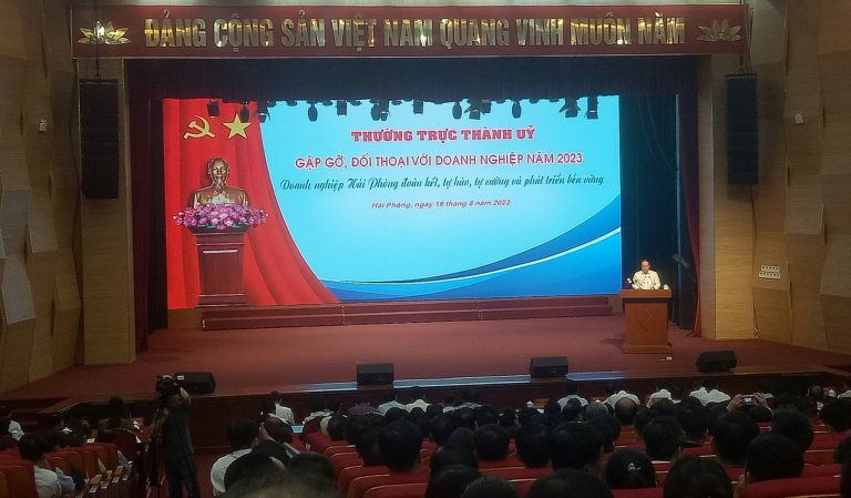 Ngày 19/8/2023, tại Cung Văn hóa LĐHN Việt Tiệp, số 53 Lạch Tray, Hải Phòng; Thường trực Thành ủy đã tổ chức gặp gỡ, đối thoại với doanh nghiệp Hải Phòng năm 2023. Tham dự có đại diện lãnh đạo VCCI; lãnh đạo thành phố Hải Phòng; hơn 600 doanh nghiệp tiêu biểu, các cơ quan thông tin truyền thông. Sau bài phát biểu khai mạc của đồng chí Lê Tiến Châu- Bí thư Thành ủy Hải Phòng; hội nghị đã xem phóng sự “Thành phố Hải Phòng đổng hành cùng doanh nghiêp”. Tiếp đó là báo cáo chuyên đề về vai trò, sự đóng góp của doanh nghiệp tư nhân nói chung và doanh nghiệp Hải Phòng nói riêng với sự phát triển của thành phố. Hội nghị đã nghe báo cáo tóm tắt tổng hợp việc giải quyết một số đề xuất, kiến nghị của doanh nghiệp. Trao đổi, đối thoại của doanh nhân doanh nghiệp với lãnh đạo thành phố. Phát biểu tổng kết, thông báo kết luận và bế mạc hội nghị. Hội nghị Thường trực Thành ủy gặp gỡ, đối thoại với doanh nghiệp Hải Phòng năm 2023 đã thu được kết quả tốt đẹp và để lại ấn tượng sâu sắc trong lòng người tham dự.